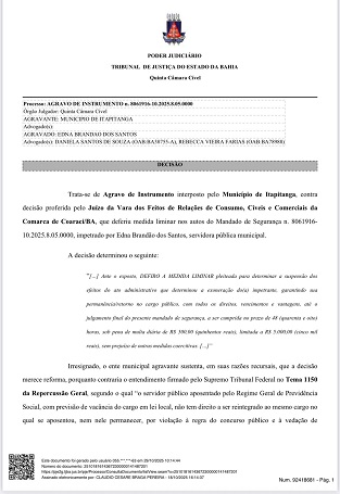 A decisão reforça a legalidade do ato administrativo praticado pelo Município de Itapitanga, que contou com representação jurídica do advogado Dr. Wanderley Porto, e contribui para a uniformização da jurisprudência sobre o tema no âmbito do Estado da Bahia.